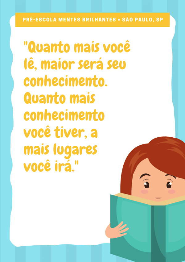 A educação não é meio pelo qual o indivíduo aprende e sim o fim para o qual se busca aprender. Cerca de 5506 citações sobre educação infantil. A falta de atributos escolares geram o descaso nas políticas educacionais. É o sarampo da humanidade. O nacionalismo é uma doença infantil; Considero a religião como um brinquedo infantil, e acho que o único pecado é a ignorância. E foi pensando nisso que separamos 10 frases sobre educação infantil, para enfatizarmos sua importância. Se uma criança não pode aprender da maneira que é ensinada. É quando ela desenvolve a imaginação e se abre para um novo mundo. A brincadeira faz parte da educação da criança. E foi pensando nisso que separamos 10 frases sobre educação infantil, para enfatizarmos sua importância.